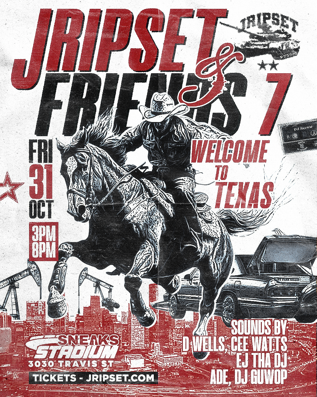 JRIPSET IS A HOUSTON-BASED PLATFORM AT THE CROSSROADS OF FASHION AND MUSIC, BUILT TO AMPLIFY CULTURE AND CREATE SPACES WHERE STYLE AND SOUND COLLIDE.